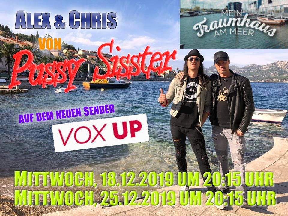 Pussy Sisster wieder im TV !!! Die RTL Gruppe startet am 1. Dezember mit ihrem neuen Sender VOX – Up, und von Anfang an mit dabei ist die sym“badische“ Hardrock- Band PUSSY SISSTER aus Waghäusel bei Karlsruhe. Pussy Sisster die in verschiedensten TV Formaten während den letzten 10 Jahren immer wieder für gute Unterhaltung gesorgt haben freuen sich sehr, wieder mit dem Sender VOX etwas am Start zu haben. Die ersten Sendungen werden am 18. Dezember und 25. Dezember jeweils Prime Time um 20.15 Uhr ausgestrahlt. Des Weiteren arbeitet Pussy Sisster im Moment mit einer weiteren großen Produktionsfirma an einem neuen Format für das Jahr 2020.